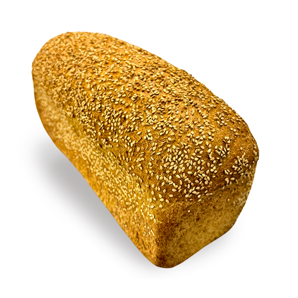 water, volkorentarwemeel, tarwe, tarwegluten, gist, bakkerszout, sesamzaad (ongepeld), suiker, gerstemoutmeel, plantaardig vet(palm), geîactiveerdtarwedesem (gedroogd), sojameel, emulgator(E482), plantaardige olie(raapzaad), glucosestroop, roggemoutmeel, suiker (gebrand), gistextract, gerstemoutextract, enzymen, tarwemoutmeel, kaliumjodide, melkeiwit, aroma, antiklontermiddel(E535)